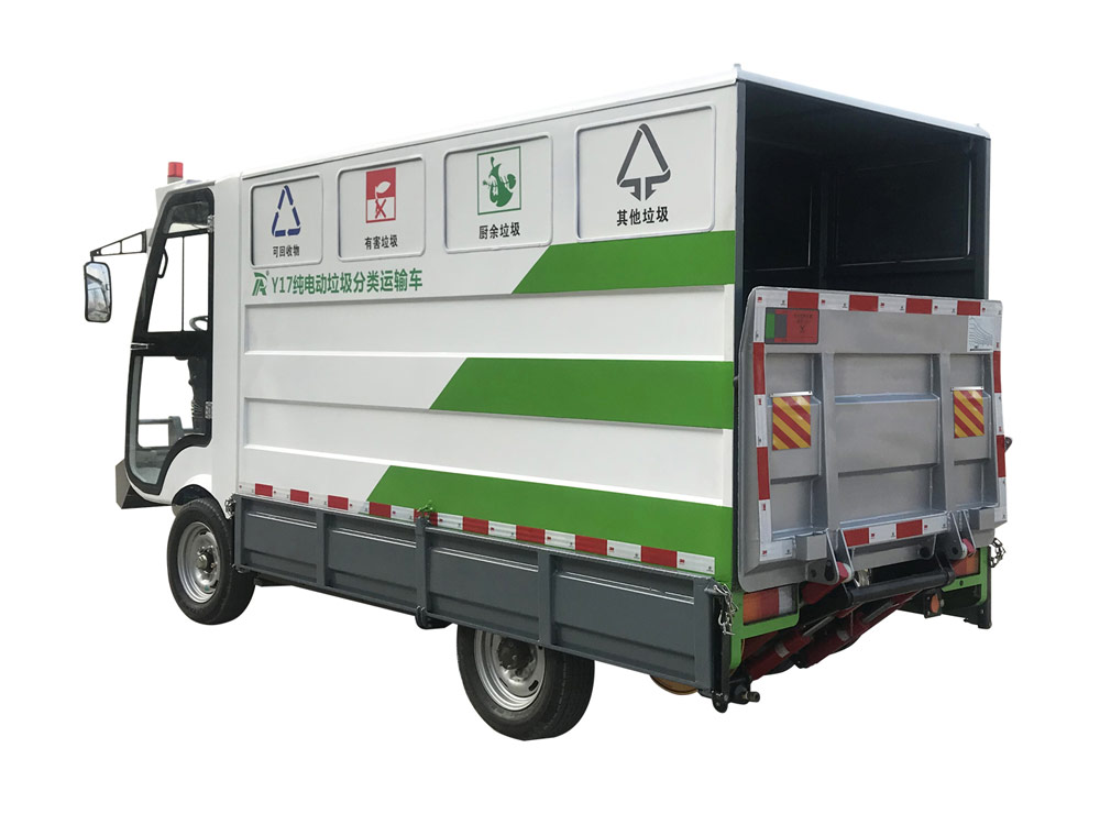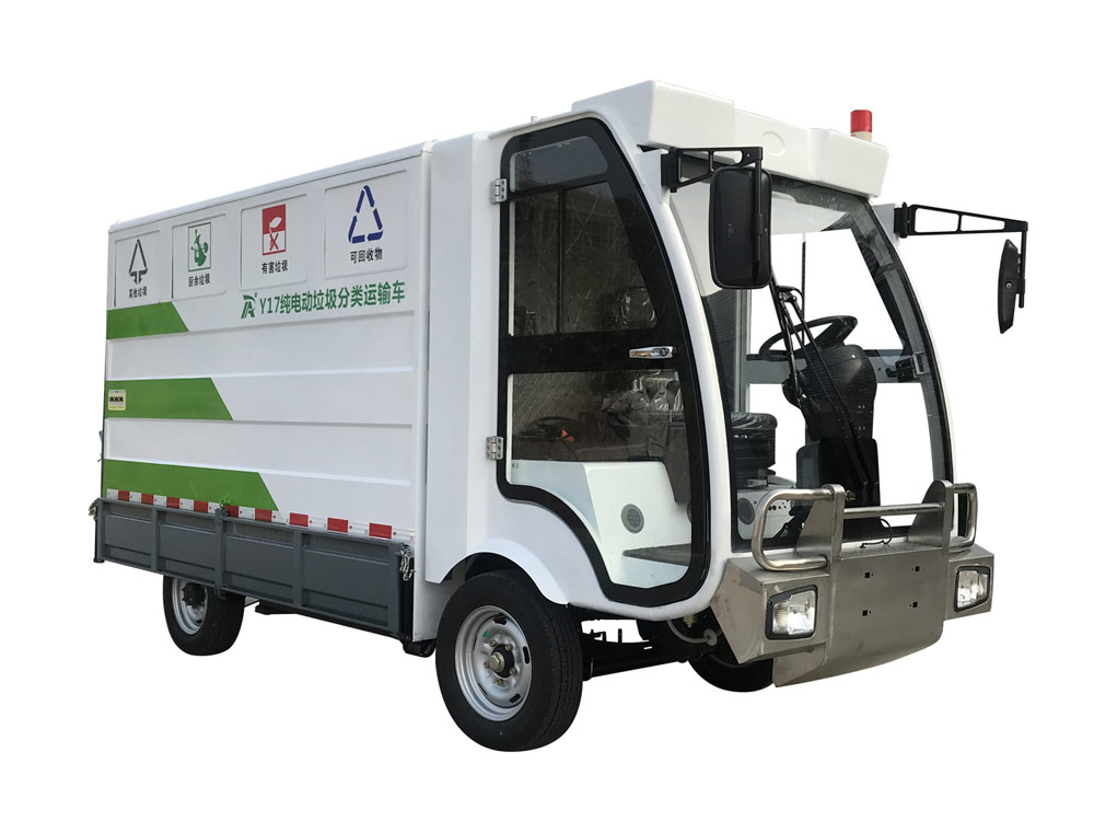 Ruibao y17 pure electric garbage collection and transportation vehicle is mainly used in streets, business districts, property districts, towns, scenic spots, schools and other places for regular and fixed-point classification, collection and transportation of four types of garbage. It is pure electric operation, low cost and zero emission. European configuration, excellent performance.