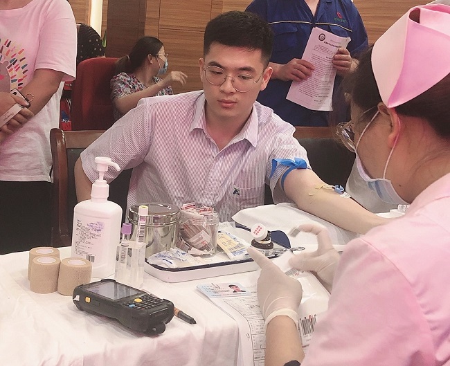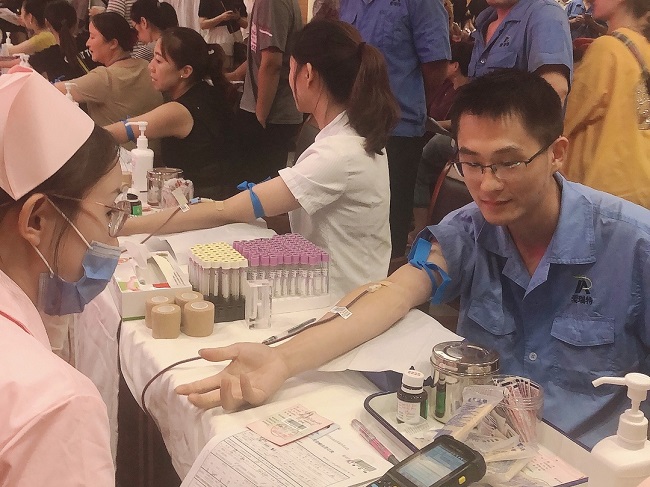 In the blood donation hall, the employees of arete who came to donate blood lined up to wait for the results of blood collection, waiting for blood donation. Each of them has a smile on his face, supports voluntary blood donation with practical actions, and offers his love for the life and health of the masses.