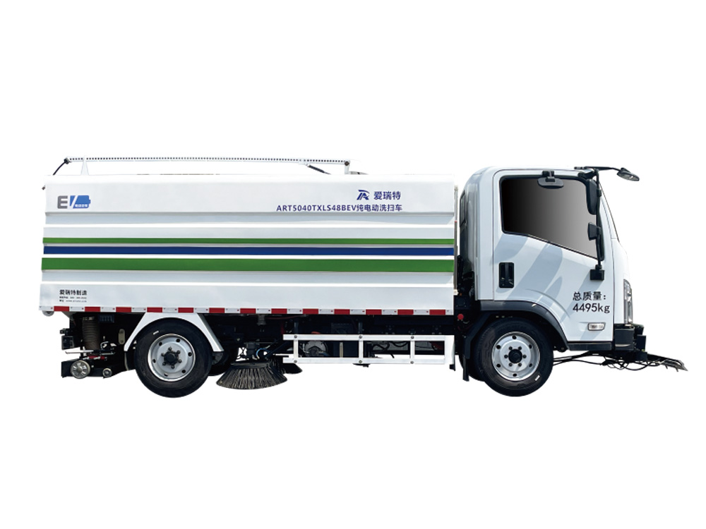 ART5041TXSS48BEV The pure electric washing and sweeping vehicle is mainly used for the general sweeping operation of main roads and other roads. It integrates the functions of sweeping and high-pressure washing. It can quickly clean the fallen leaves, stones, sand dust, white garbage, etc. and dump the garbage.