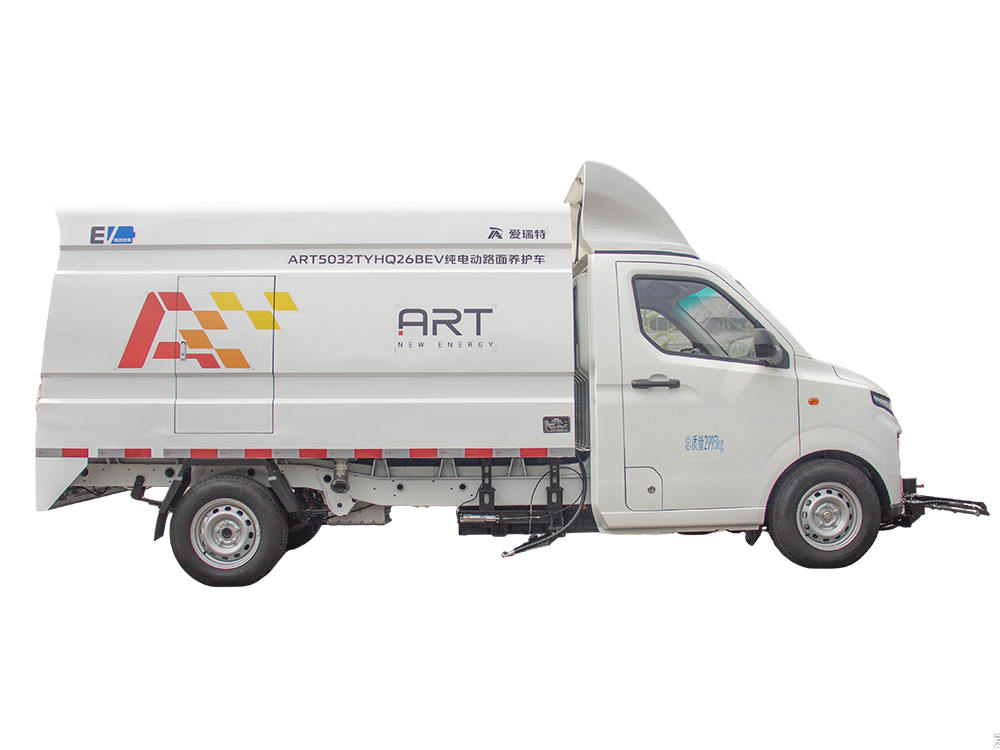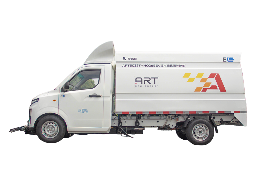 ART5032TYHQ26BEV純電動路面養護車主要用于機動車道、非機動車道、人行道、背街小巷、市政園林、物業小區等路面的沖洗養護。下置左右側沖可與掃地車組合作業,前置高壓排沖及多角度沖洗裝置,用于路面、馬路道牙和交通標識線處的污垢及城市牛皮癬的清理。