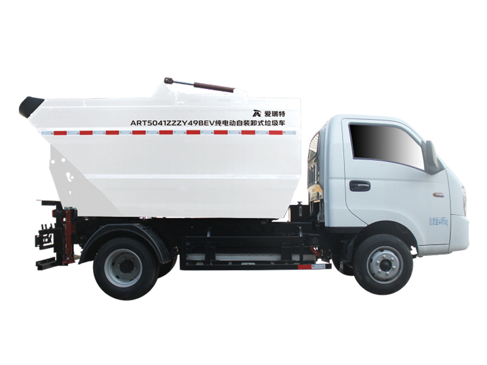 ART5041ZZZY49BEV純電動自裝卸式垃圾車采用后置翻桶機構(gòu)上料,高位傾翻垃圾箱卸料的生活垃圾收運車,能夠同時滿足兩個標準垃圾桶同時上料,作業(yè)效率極高,適合城市小區(qū)、主次干道和沿街標準垃圾桶的收運,同時可以與大型純電動壓縮式垃圾車進行車車對接。